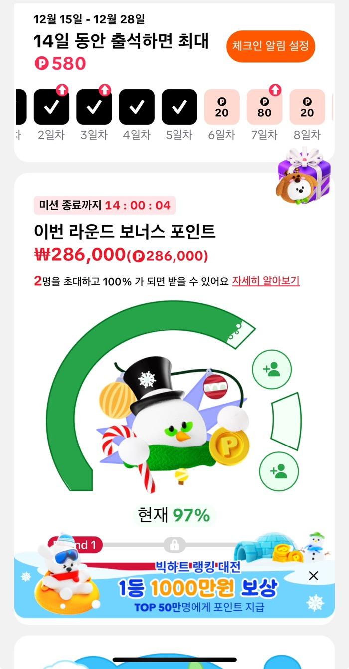 앱에 바로 가입하시면 안되고 아래 저의 링크로 가입하셔야 충전이 됩니다. 그리고 10일간 출첵을 성실히