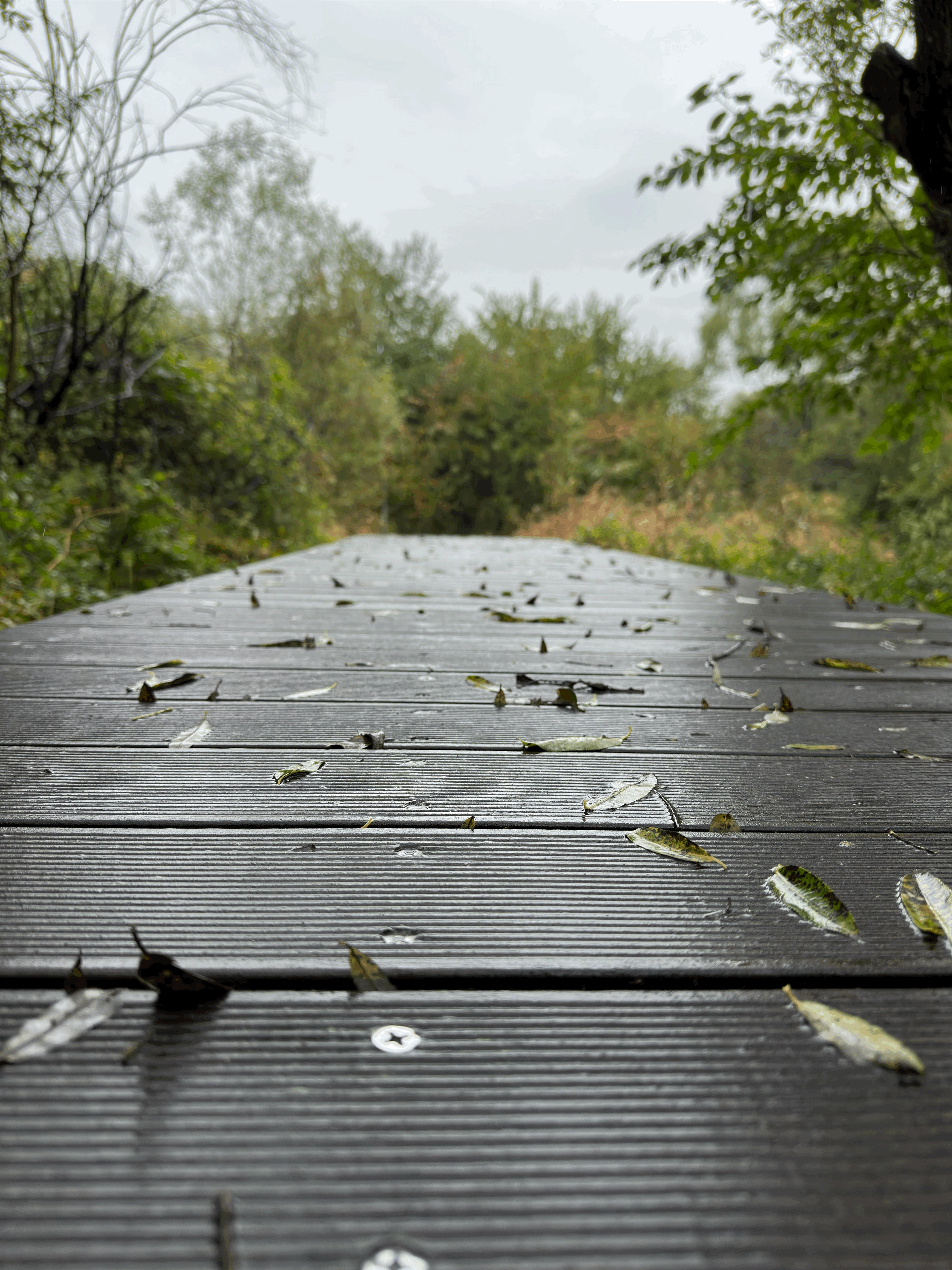이 날은 비가 부슬 부슬 내리는 날이었는데 분위기가 더욱 운치 있었습니다. 계단을 내려가 본격적인 산책을 해봅니다. 갈래길이 3곳인데 가운데 데크길로 들어가 봤습니다.
