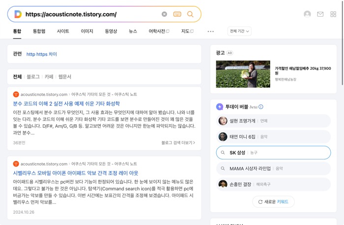 만든지는 10년이 넘은 티스토리 블로그가 있었습니다. 기타에 관련된 주제로 포스팅을 하는 블로그 입니다.