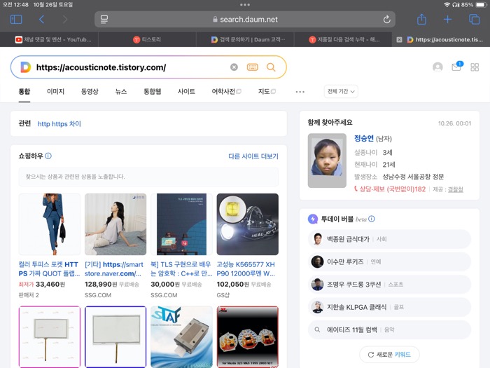 아... 티스토리 주소로 검색을 해도 검색이 되지 않았습니다. ㅜㅜ 원인이 뭘까 고민을 해봤습니다. 하나의 심증은 아주 오래전 애드센스의 조건이 되지 않았을 때 그래도 수익이 날까 하여 텐핑(?)이라는 광고를 연동했던 기억이 있었습니다. 바로 설정에 들어가서 확인. 지금은 연동되지는 않았지만 계속 광고창에 나오기는 했습니다. 연동을 해제하려고 했지만 계속 애러가 나서 이거 어떡하지 하고 당황하고 있었습니다.
