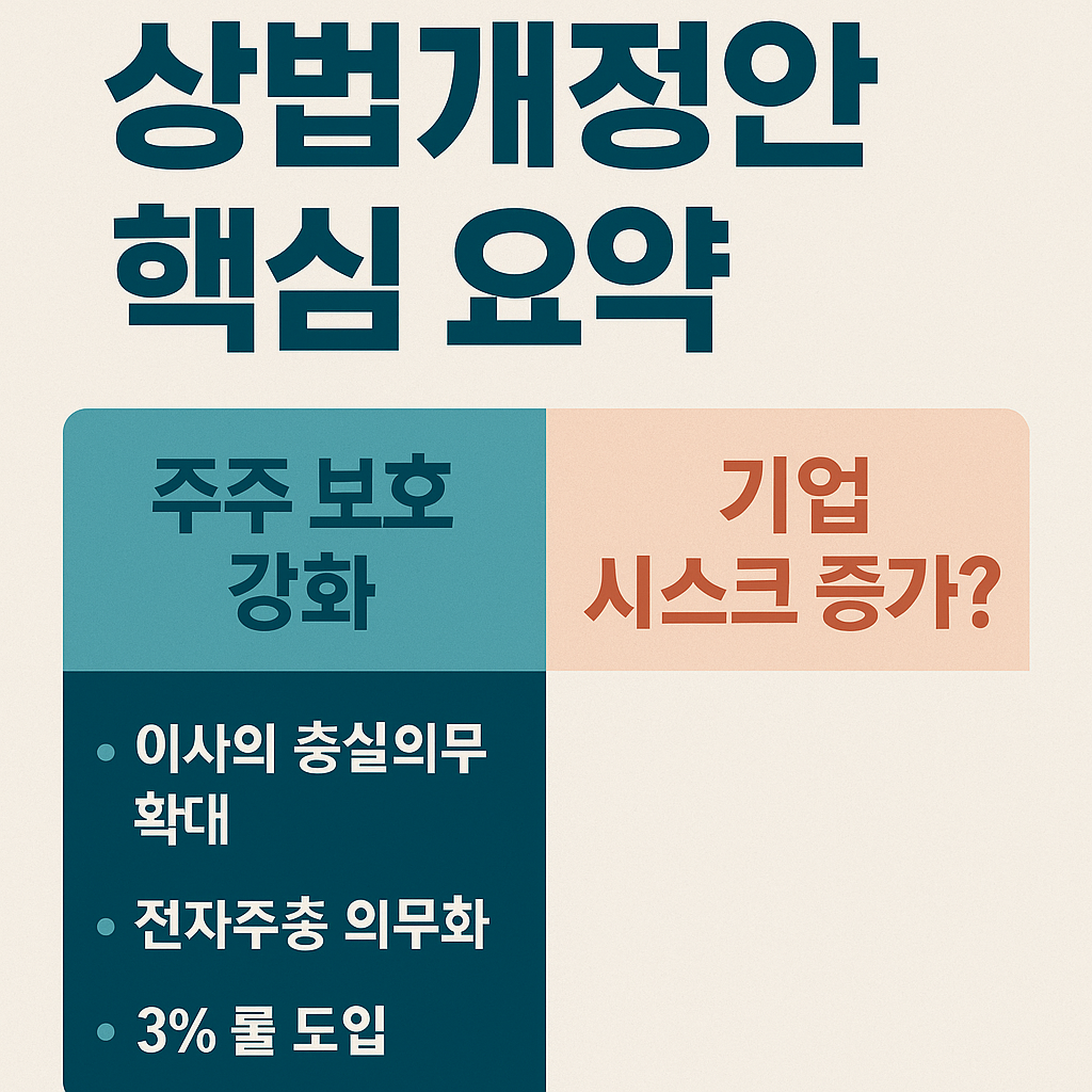 2025년 상법 개정안이 국회 법사위를 통과했습니다. 이사의 충실의무 확대, 3% 룰, 전자주총 의무화까지. 실제 기업 사례를 들어 변화된 내용을 쉽고 자세히 정리했습니다.